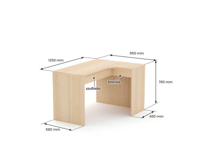 Biurko narożne B45 125x95 P Dąb Lindberg