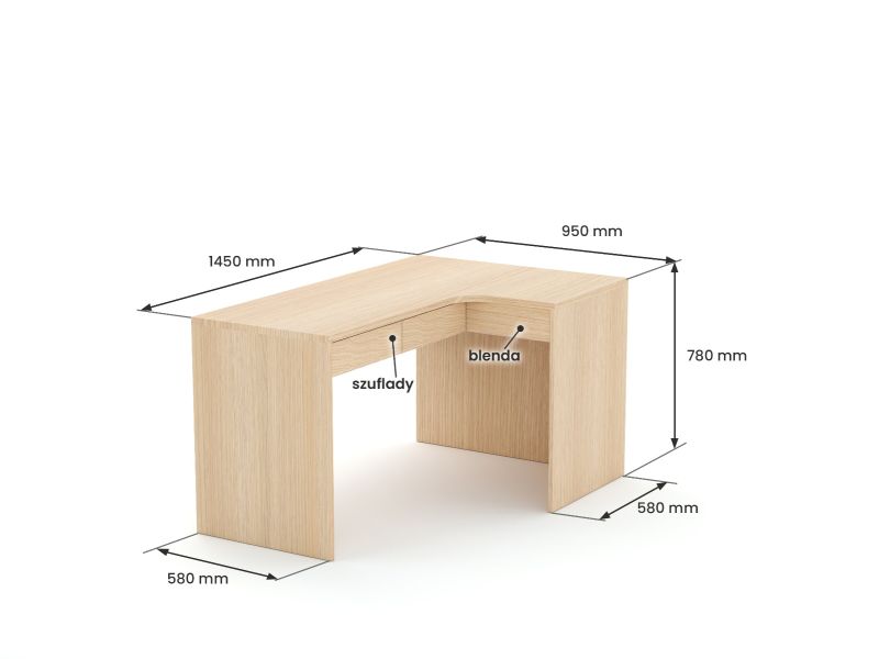 Biurko narożne B58 145x95 P Dąb Lindberg