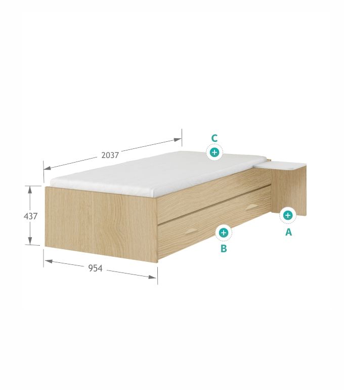 Łóżko 90x200 niskie Young Dąb Lindberg