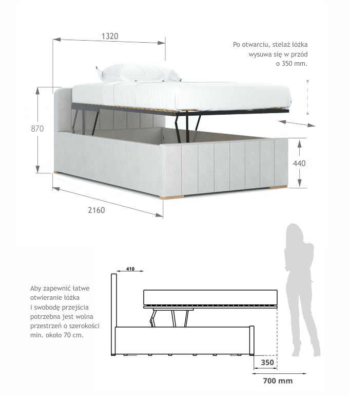 Łóżko SkyBed 120 H=87 Grey Cloud 81