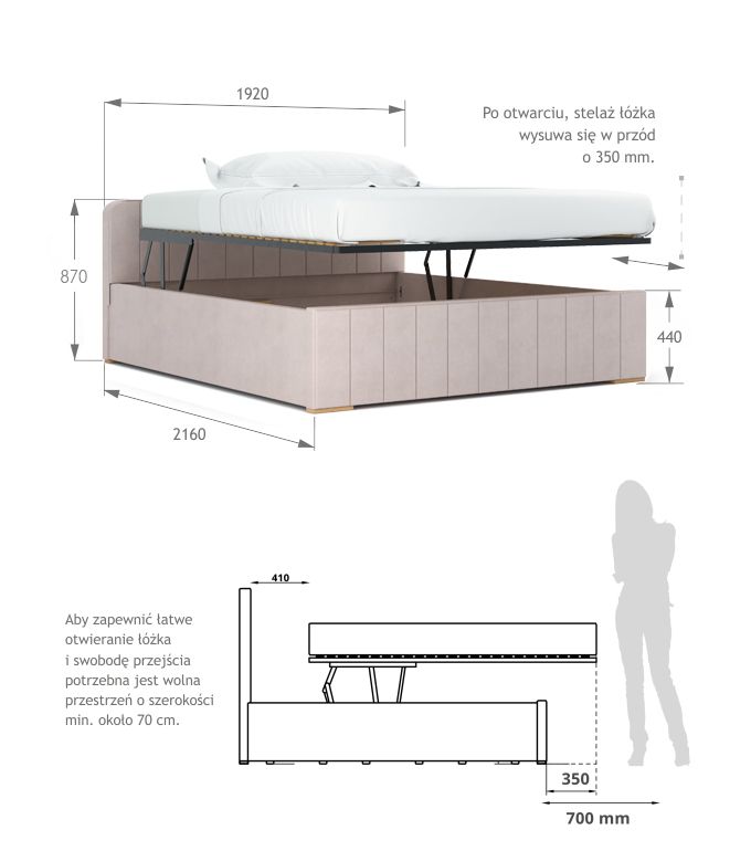 Łóżko SkyBed 180 H=87 Blush Cloud 60