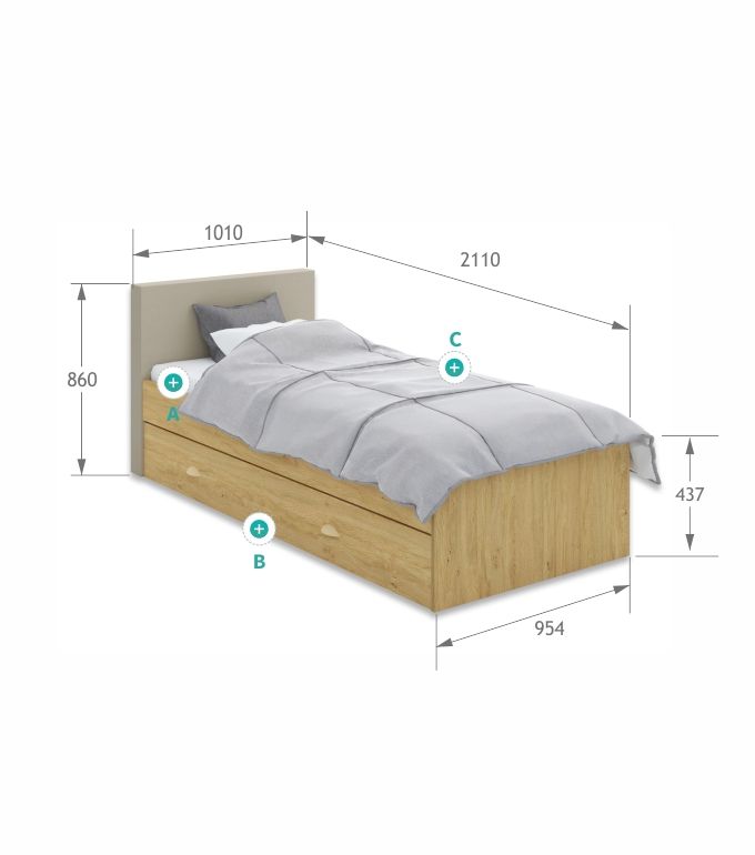 Łóżko tapicerowane 90x200 Oak Latte