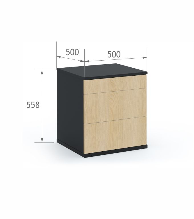 Box z trzema szufladami. Fronty malowane farbami rekomendowanymi przez Polskie Towarzystwo Alergologiczne (PTA) i utwardzane światłem UV.