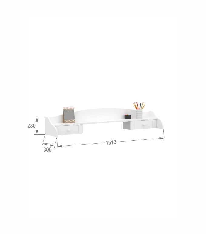 Biały sekretarzyk mocowany do biurka. Delikatne, matowe uchwyty.