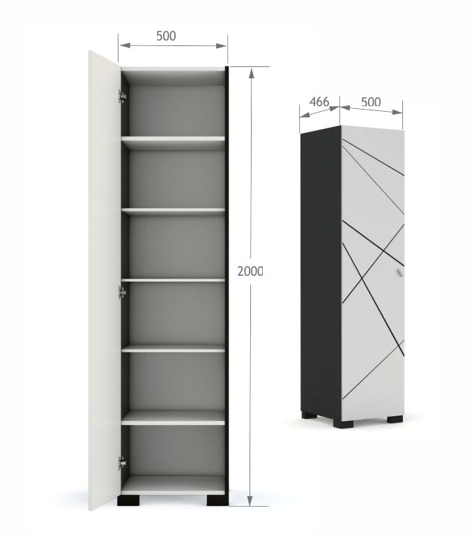 Grawerowany, malowany front z liniowymi aplikacjami. Korpus z laminowanej płyty w kolorze antracytu.