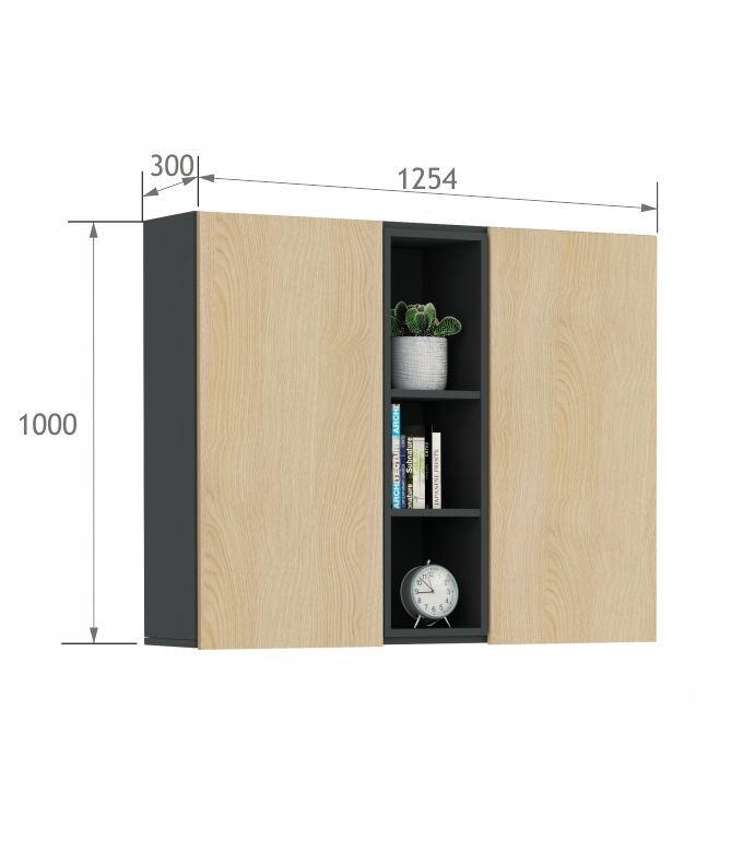 Szafka wisząca doskonale zaprezentuje się nad łóżkiem lub biurkiem dostępnymi w ofercie. Front o łagodnej strukturze dębu z drobnymi sękami oraz antracytowy korpus, to motyw przewodni kolekcji.
