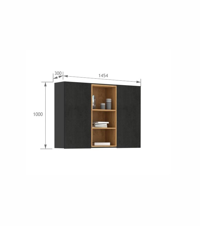 Szafka wisząca doskonale zaprezentuje się nad łóżkiem lub biurkiem dostępnymi w ofercie. Fronty malowane farbami rekomendowanymi przez Polskie Towarzystwo Alergologiczne (PTA) i utwardzane światłem UV. Korpus o strukturze drewna dębowego i nadrukowany na frontach charakterystyczny wzór ciemnego betonu, to motyw przewodni kolekcji.